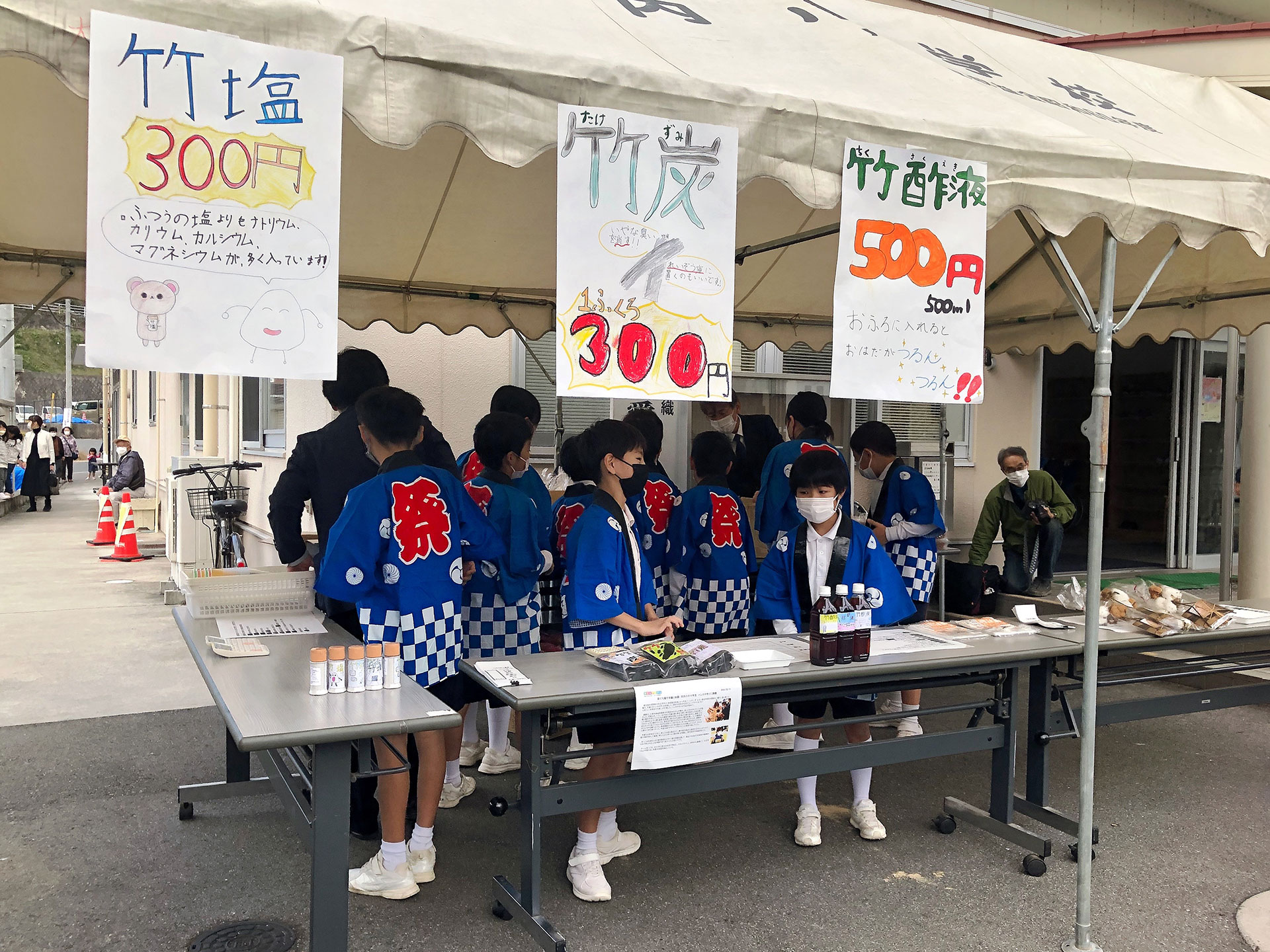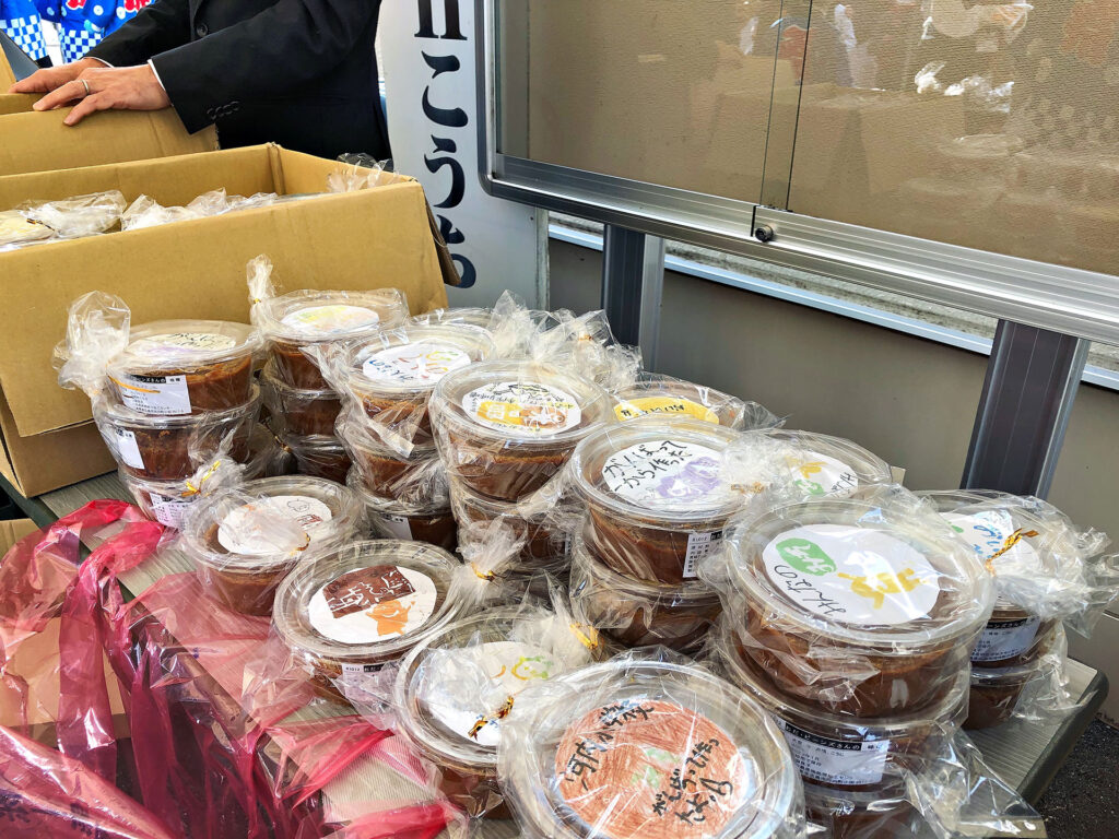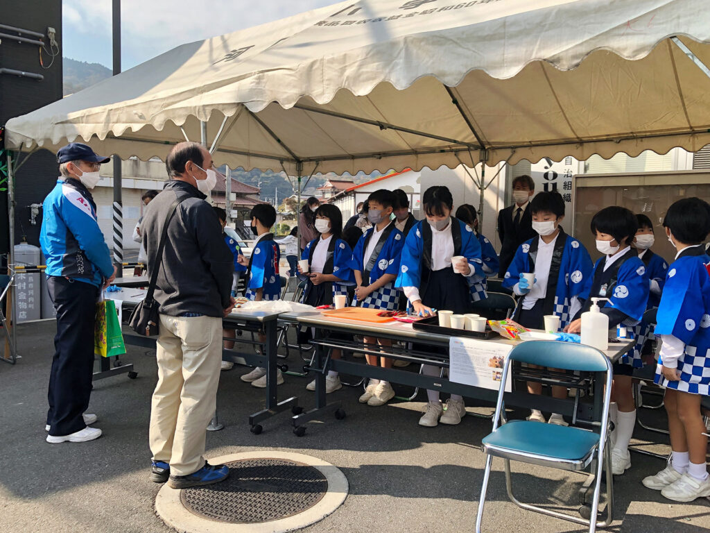 小学生の味噌等販売 チーム豆っこ 2022.11.12(土) 11月12日(土)10時から河内地域センター大ホールで文化展が開催されました。 河内地域センター事務所前では河内小学校4年生が自分達で作ったみそや竹炭、竹塩、綿花を販売しました。販売前からお客さんが並び、竹塩?は開始10分ほどで完売しました。 他の商品も子ども達の元気な声であっという間に売り切れました。私が買ったのが最後のみそでした。後ろに居た人ごめんなさい? 地域センターの大ホールではたくさんの作品が展示され皆さん熱心に見られてました。