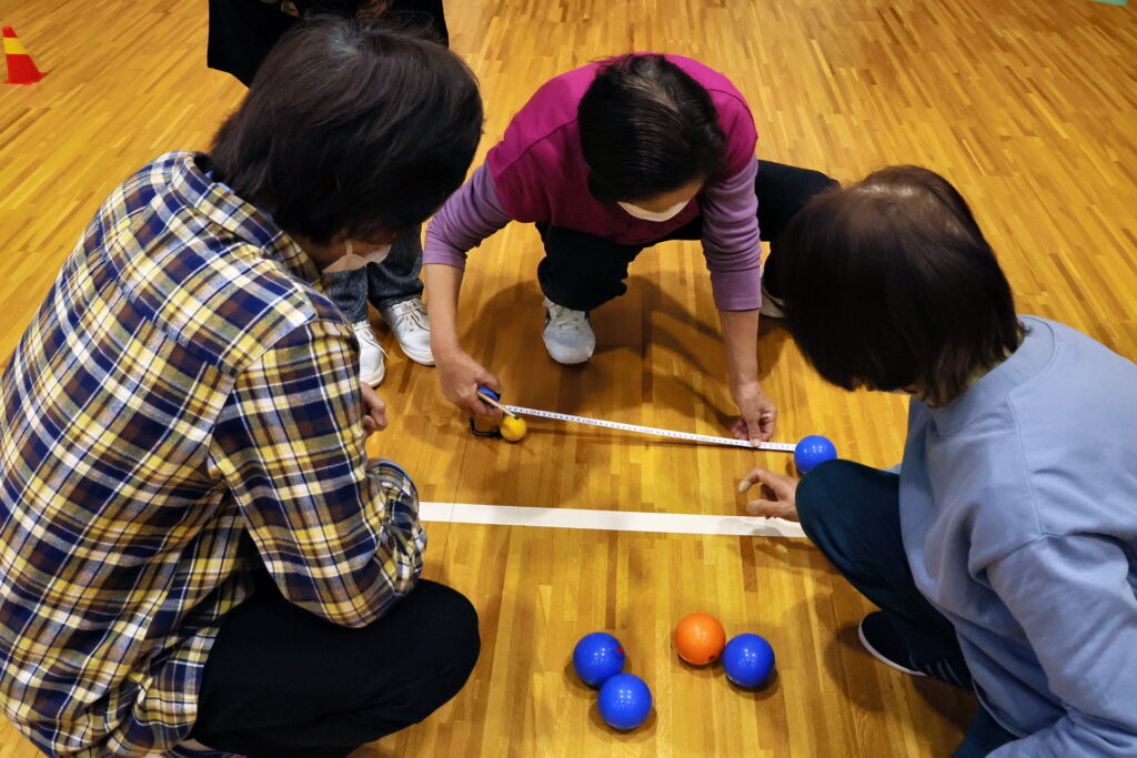 ペタンクは、東広島市の生涯スポーツとして認定されているスポーツです。競技は正式ルールではなく、地元のローカルルールで行われました。
