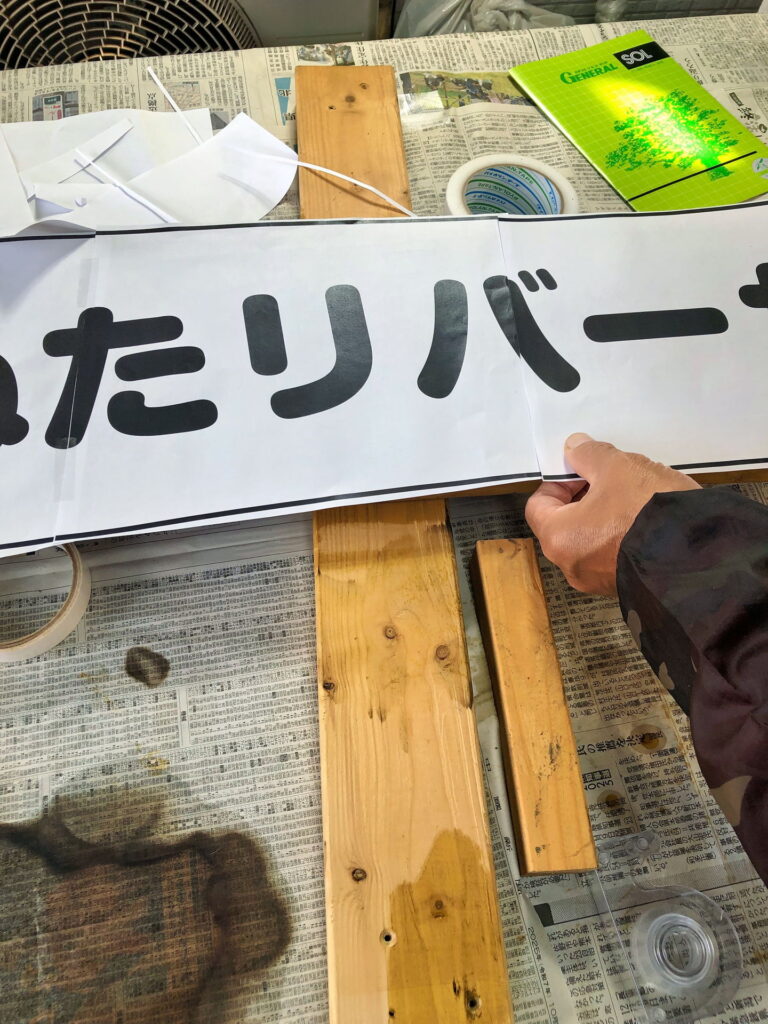 次回はペンキを筆で一文字ずつ塗っていきます。